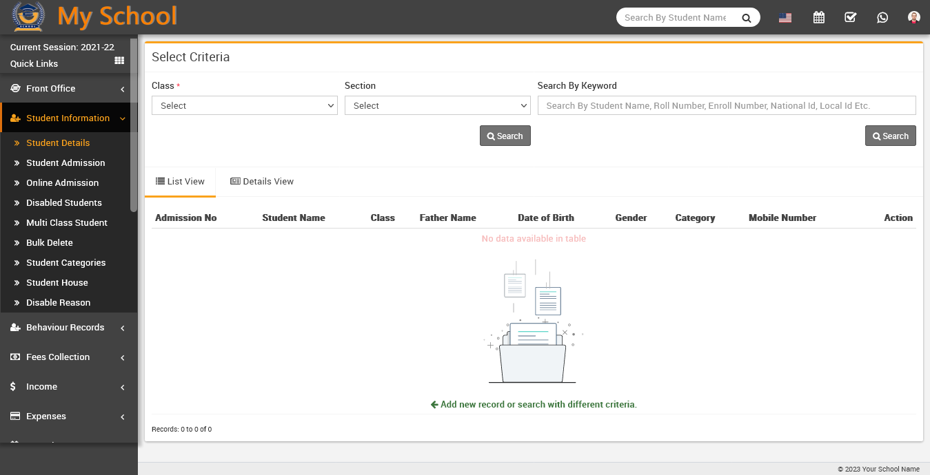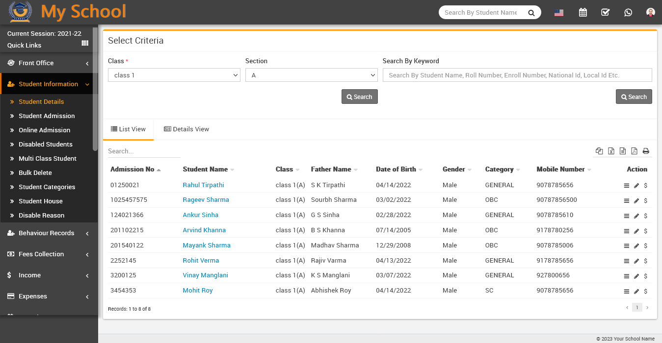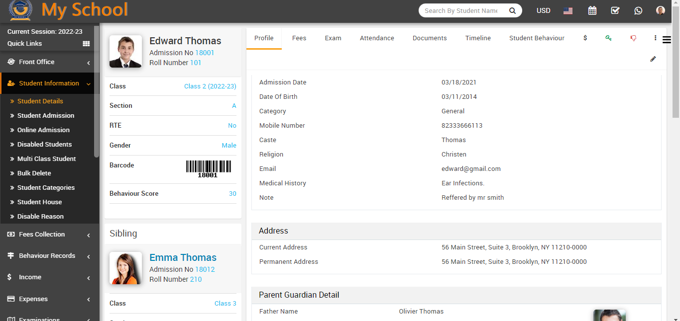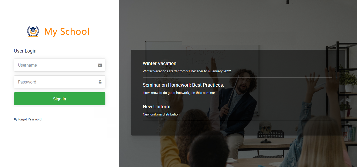 Now, fill the credential of the student and click on the sign in button, student profile will be open.