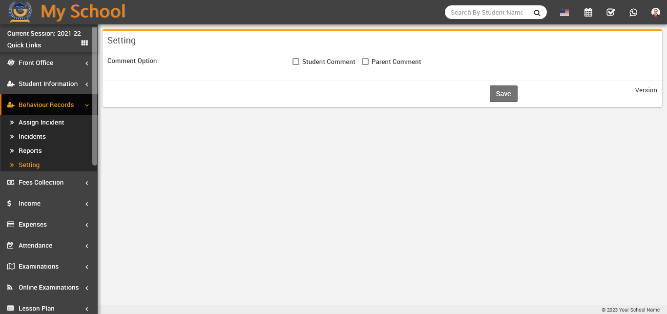 Here you can see the comment option showing for the student as well as the parent, now check the checkbox where you want to comment. If you check both checkbox, so that student and his parent will be able to comment on related incident. Then click the save button to save setting.