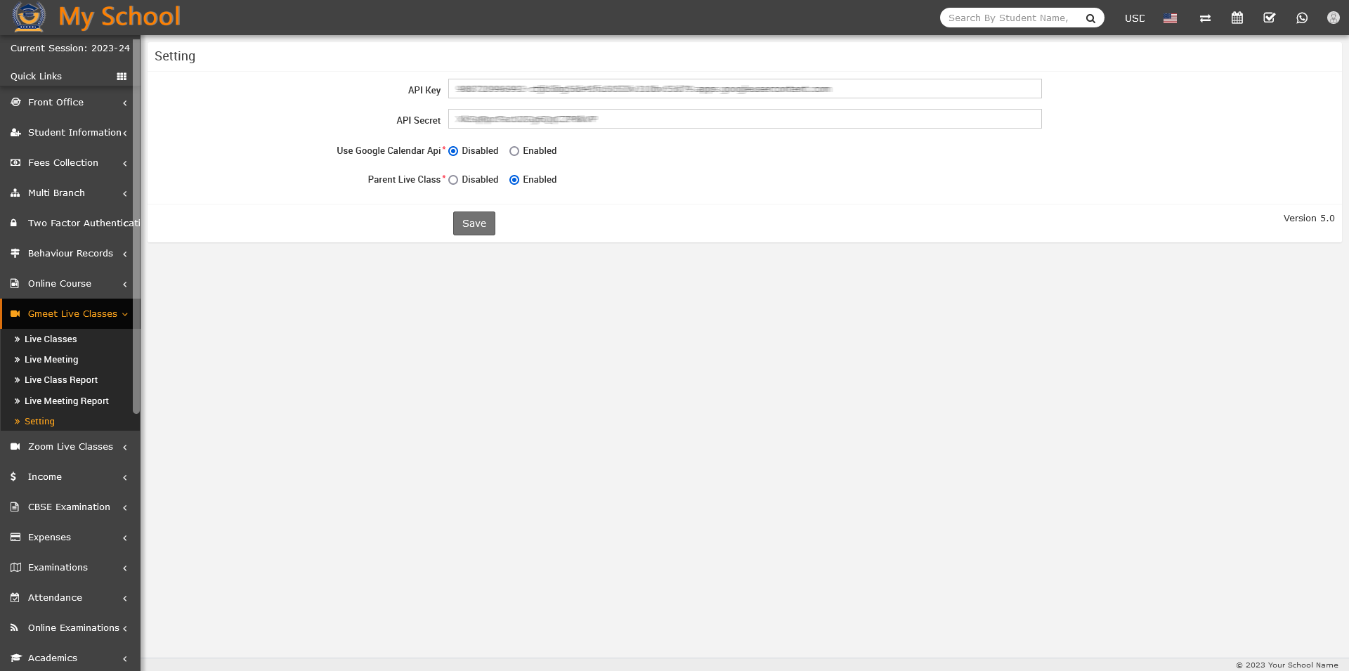 Now enter your Client ID and Secret Key on your Gmeet setting page and check Use Google Calendar Api option Enabled and then click on the Save button.