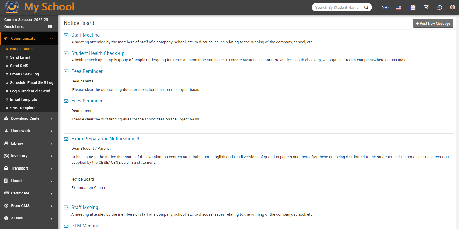 Here you can view posted message in the notice board page.
