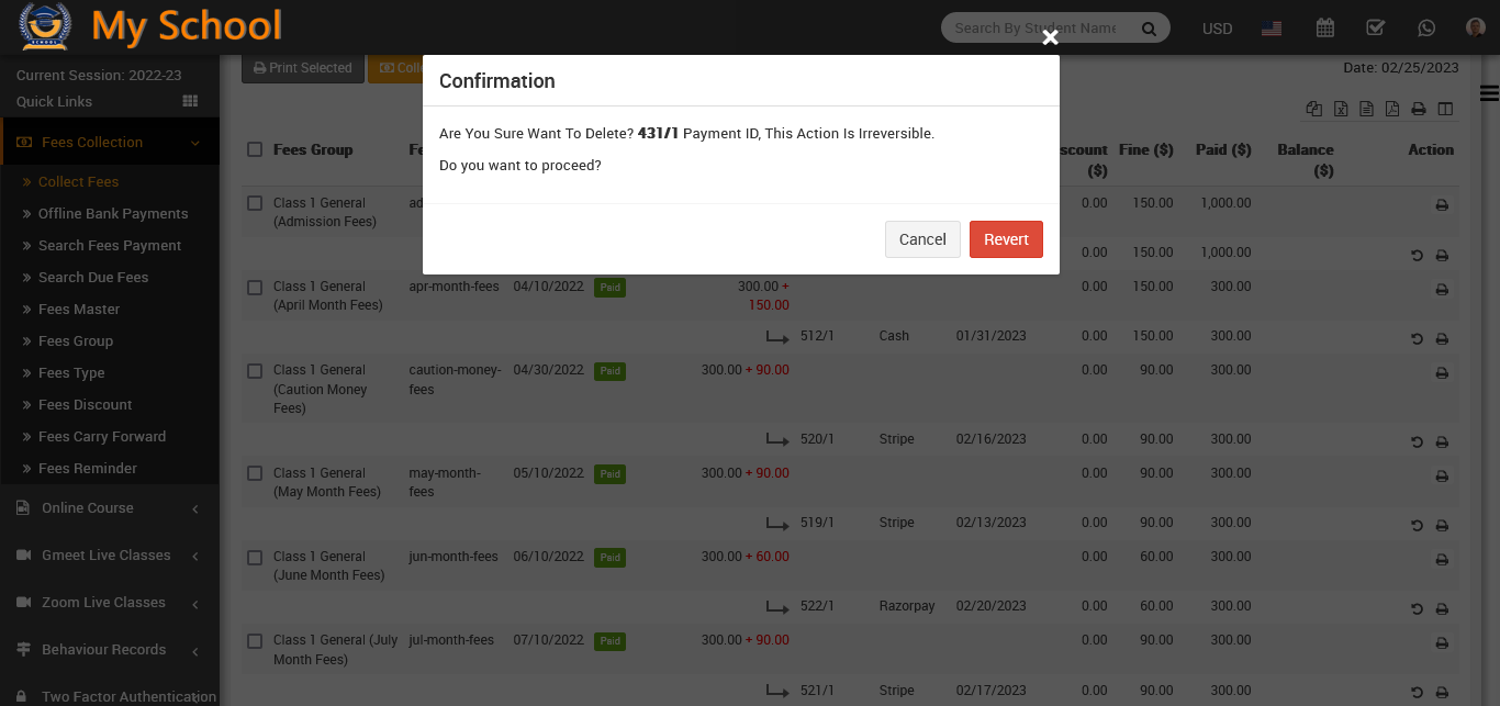 now click on Revert button, so that student fees will be reverted.