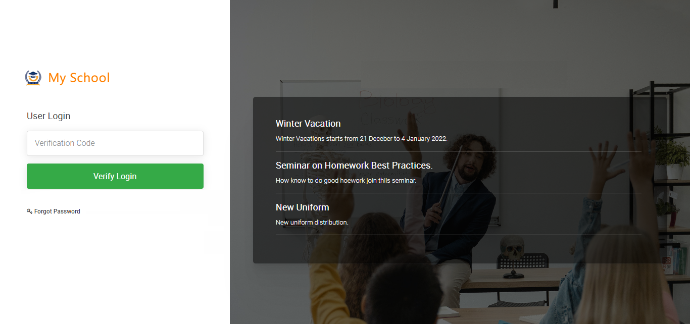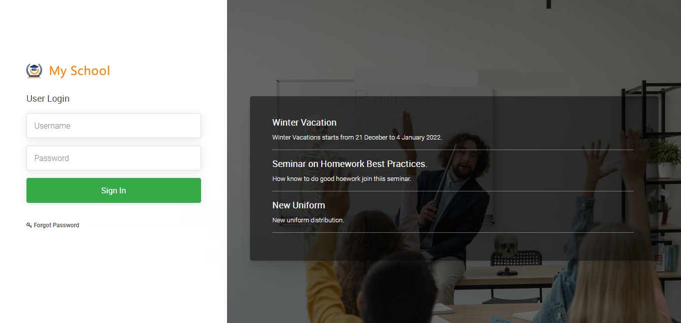 To see if Two Factor Authentication is working for the user (student or parent), go to the user's login page in your School ERP Software, enter the username and password, and click sign in.