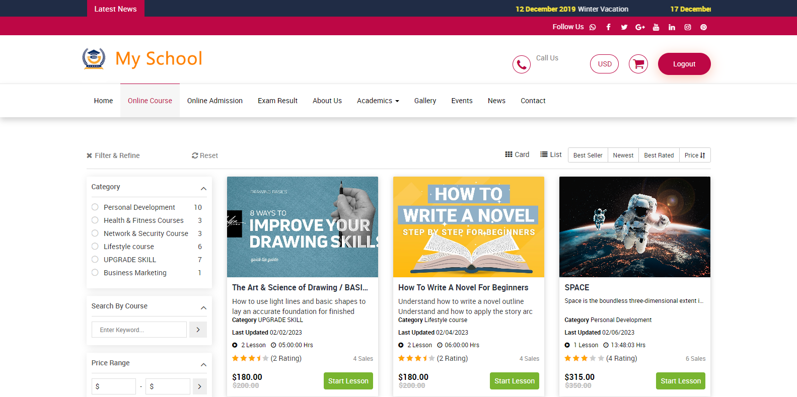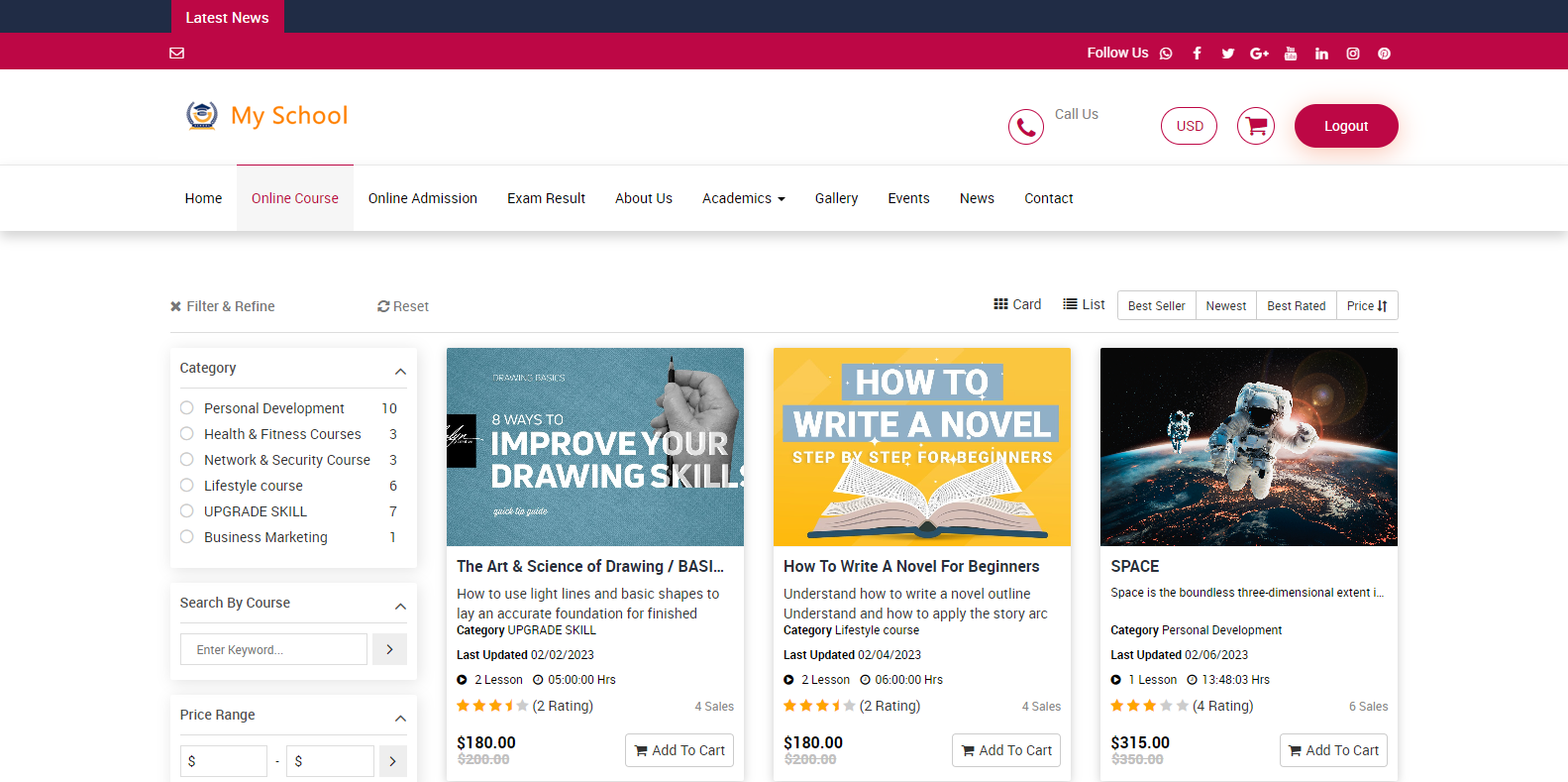 Now on this page, you can see the multiple online courses available. You can buy these courses.