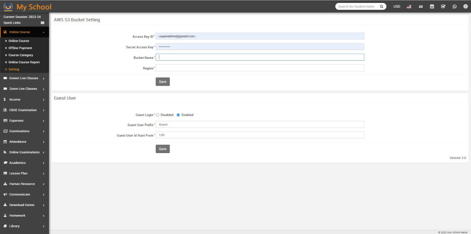 Now enter Access Key ID, Secret Access Key, Bucket name and Region in your setting page and then click on the Save button.