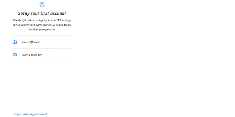 Now open the Google Authenticator app on your mobile device and setup your first account page by clicking on Enter a setup key.