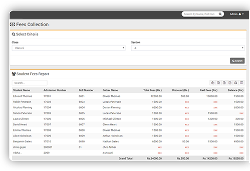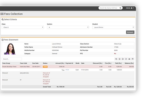 Fees and discount allotment on more than 5 different criteria. Allocate fees on whole class-section or on single student