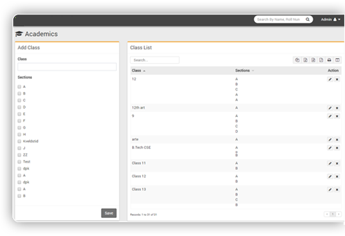 Add any no of class/grade and add any no of sections at once