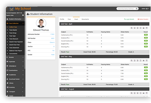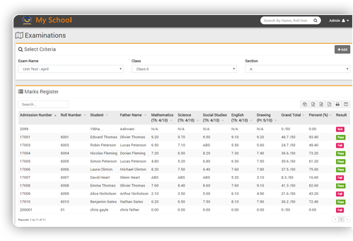 Complete examination management from exam create to exam schedule to marks entry to progress report (2.2.0) with grades