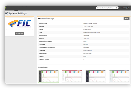 Add system general settings like school name, address, school code, current academic session, session start month, school logo etc