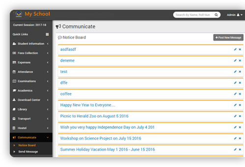 Send messages to students, parent and teachers through notice board