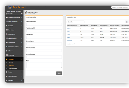 Manage school vehicle/bus/van, routes, and driver details